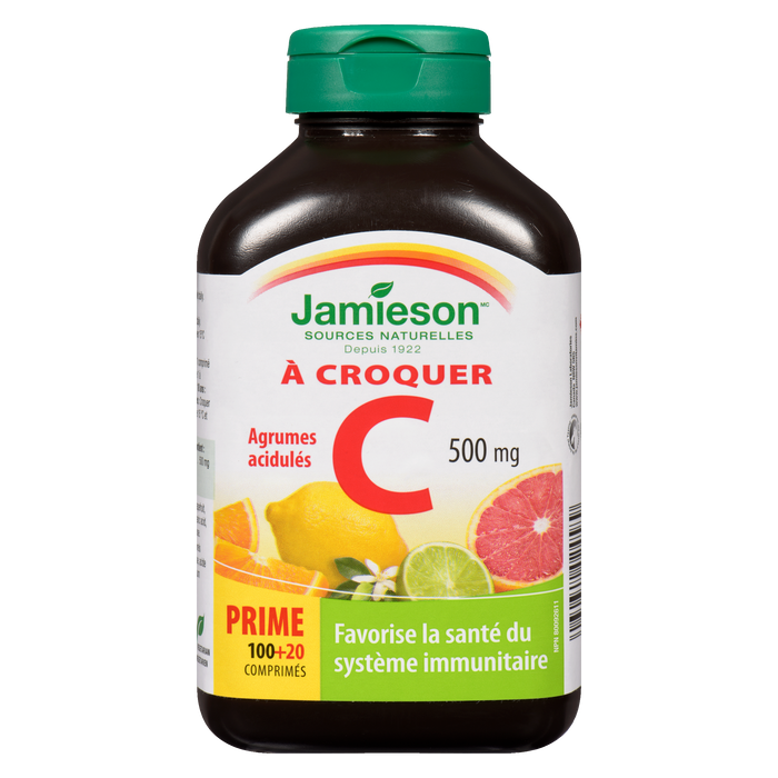 Jamieson C à croquer aux agrumes acidulés 500 mg 100+20 comprimés